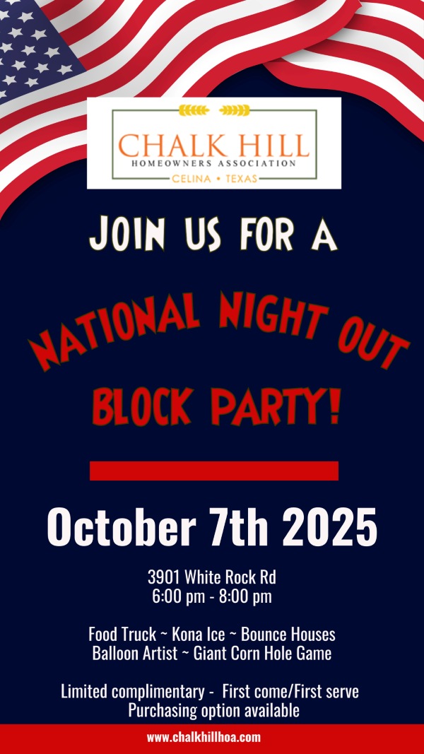 Chalk Hill is participating in the City of Celina's National Night Out Program!